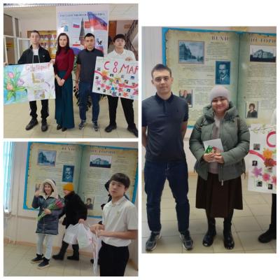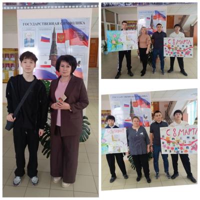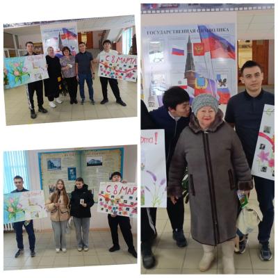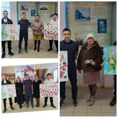 На пороге главного весеннего праздника участники волонтёрского отряда подготовили поздравительные плакаты для представительниц прекрасного пола нашего техникума.