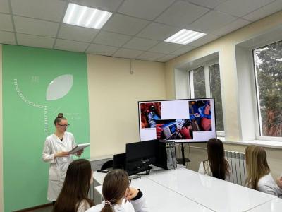 7 апреля 2026 года на базе центра функциональной и клинической диагностики ФГБОУ ВО Вавиловский университет, в рамках проведения 4-го регионального этапа чемпионата высоких технологий на территории Саратовской области, обучающаяся ВТ- 20201 Васильева Ирина Алексеевна под руководством преподавателя Федорина Андрея Александровича продемонстрировала презентацию, и провела мастер-класс «Ветеринарно-санитарная экспертиза молока».