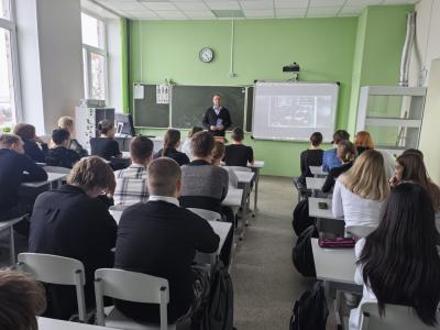 В рамках мероприятия рассказал школьникам о перспективе обучения в Финансовом технологическом колледже по Федеральной программе "Профессионалитет", в том числе о возможности прохождения производственной практики у будущих работодателей-партнёров, и дальнейшего трудоустройства после окончания колледжа. Обратил особое внимание обучающихся на наличие новой лаборатории, где они приобретут практический опыт, работая на современном инновационном оборудовании.
