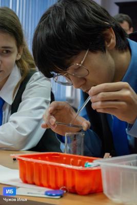 Ребята узнали, какие микробы используются в различных отраслях народного хозяйства, какие микроорганизмы можно обнаружить в привычной пище, как проводится микробиологическое исследование ферментированных продуктов. Школьники провели микроскопию препаратов из кисломолочных продуктов, квашеной капусты и пекарских дрожжей. Изучая микропрепараты, ребята научились отличать живые и мёртвые дрожжевые клетки, познакомились с кокковыми и палочковидными формами бактерий в составе заквасочных культур. Живой интерес проявили участники мастер-класса к практическим аспектам заявленной тематики: как проверить информацию на этикетке продукта, как определить количество молочнокислых бактерий, как подтвердить пригодность дрожжей.