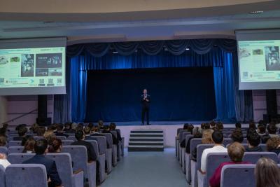 На торжественном открытии в актовом зале УК № 3 школьников и их преподавателей поприветствовали проректор по учебной работе Сергей Макаров и начальник отдела организации приема абитуриентов и профориентационной работы Михаил Левин.