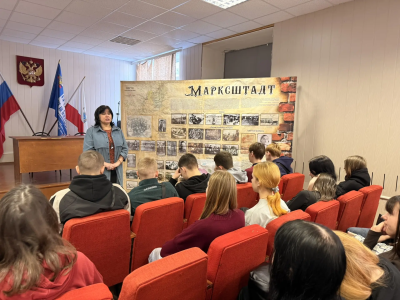 Далее гости узнали о временах Баронска и Екатерины II, а также истории переименования города в Екатериненград и Марксштадт. Завершилась экскурсия погружением в современный период, когда город получил свое нынешнее название — Маркс.
