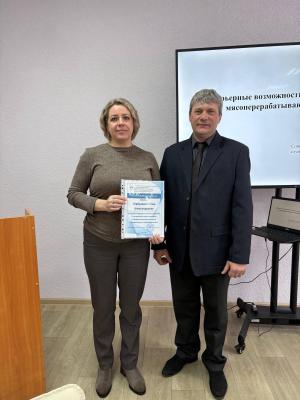 Одним из модераторов мероприятия выступал преподаватель колледжа Зацаринин А.А.; спикерами являлись Горбунова Е.А. - начальник службы персонала ООО Комбинат «Дубки»; Пугачева А.П. – оператор линии упаковки готовой продукции ООО Комбинат «Дубки», выпускник колледжа 2025 года ФП «Профессионалитет».