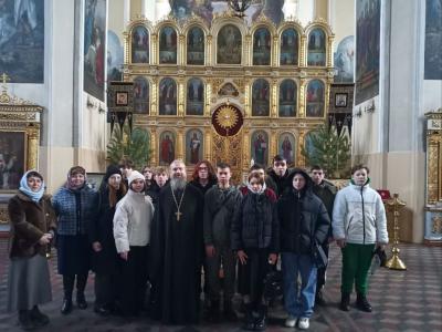 20 января на базе Свято-Воскресенского соборного храма г. Пугачева состоялась встреча студентов Пугачевского филиала ФГБОУ ВО Вавиловский университет (под руководством преподавателя Цыганковой Л.А.) со священнослужителями главной святыни города. Настоятель собора благочинный Николаевского округа протоиерей Владимир Растопшин рассказал юным землякам об истории, богословском значении праздников Рождества Христова и Крещения Господня, который иначе называют Святым Богоявлением. Студенты узнали о воплощении Божьего начала в земном облике, миссии Иисуса Христа, заключающейся в спасении человечества от гибели и даровании людям надежды на жизнь вечную, об исполнении Сыном Божиим всякой правды, о явлении Бога человеку во всех трёх ипостасях. В ходе беседы обучающимся были также даны представления о доброте, милосердии, справедливости, великодушии, патриотизме и рассмотрена их роль в жизни православного человека.