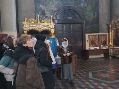 После беседы с благочинным его помощник Ирина Владимировна Кузнецова провела для молодёжи экскурсию по собору – рассказала об истории его строительства, храмосоздателях и хранящихся по нынешний день святынях. Встреча получилась интересной, познавательной, душевной.