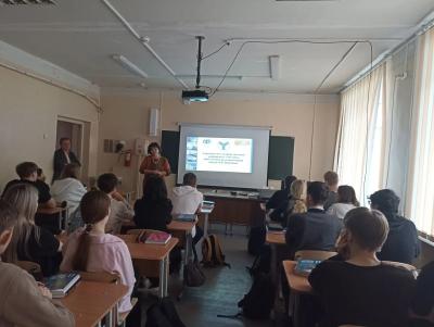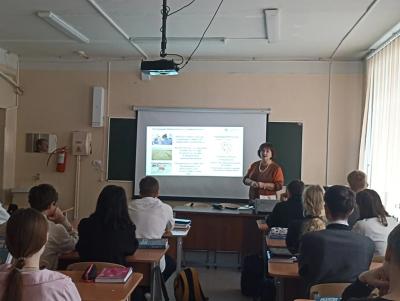 Учащимся была представлена информация о том, как фундаментальные знания, получаемые в школе (физика, химия, информатика, русский язык), являются критически важной основой для успешного освоения современных университетских программ. Акцент был сделан на междисциплинарности и практико-ориентированности образования в Вавиловском университете. Шалаева Н.В. рассказала о современных образовательных трендах: цифровизация, устойчивое развитие сельских территорий и искусственный интеллект, бизнес- информатика; рассказала о том, как они создают спрос на новые специальности и компетенции, которым обучают в Вавиловском университете. Обратили внимание на то, что в вузе при поддержке председателя ГД Володина В.В. была создана военная кафедра.