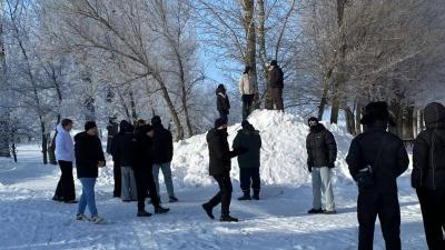 На улице морозно и солнечно а на площади было жарко: соревновались 4 сборных команды (состав 5 человек) 1 - 4 курсов. Программа соревнования состояла из 3х эстафет: