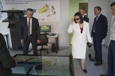 Гости осмотрели технопарк «Кванториум», киберфизическую лабораторию, инжиниринговый центр, центр молодежного инновационного творчества, центр агроробототехники и VR/AR технологий.