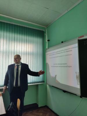 Чем занимается ветеринарный врач и как им стать? Ответы на эти вопросы ученики 10-11 классов из краснокутской школы №3 получили из первых уст — на встречу с ними приехал заведующий кафедрой Вавиловского университета Владимир Викторович Строгов.