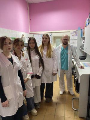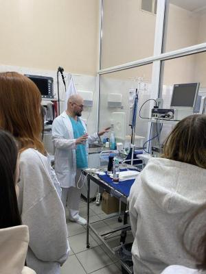 Студенты посетили ключевые отделения клиники: приемное, терапевтическое, хирургическое, а также эндоскопический комплекс и клинико-диагностическую лабораторию. Заведующий лабораторией, кандидат ветеринарных наук Александр Кудинов продемонстрировал студентам современное диагностическое и лечебное оборудование.